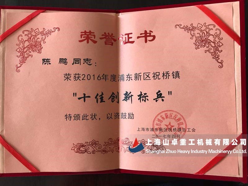 熱烈祝賀上海山卓重工陳鵬獲得“十佳創(chuàng)新標(biāo)兵”